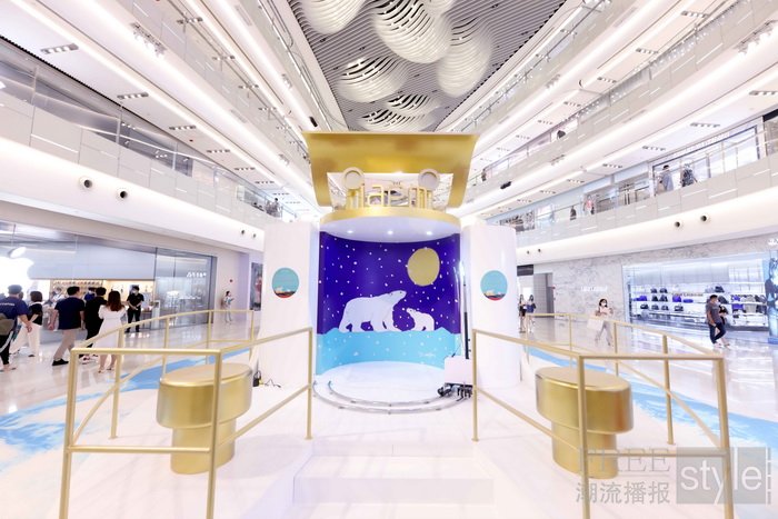 iapm中庭以“寰宇之旅”为设计灵感,加拿大著名艺术家Dawn Oman具有代表性的极地风景作品通过高清LED屏动态呈现,绚烂闪烁的北极光划破天际,憨态可掬的北极熊闲庭散步,打造穿越时空独具魅力的极地空间。一望无际的浩瀚汪洋上,「iapm号」巨轮破冰而出,带你环游世界,邂逅极光,开启和谐共生的追光之旅!