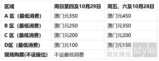 订座及专区最低消费 :