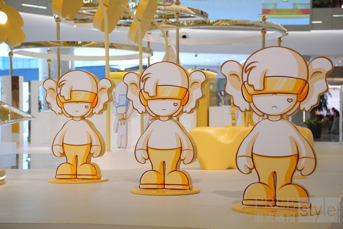 步入纵深处,一条花瓣廊道温柔展开。脚下的LED屏如流动的魔法画布,每一步都能踩出细碎星光。廊道两侧,八朵淡黄色花朵静立,花茎弯向中央似暖黄羽翼,每朵花外侧都立着一只造型各异的Marsper公仔,身姿与花茎相依而立,如同打造梦境的魔法精灵。而站立在仿真奶酪上的蓝黄双色公仔裹着缀饰的魔法帽,灵动又可爱,化身 “潮酷守护者”。踏入廊中,星光漫过奶酪底座,瞬间被这份藏着细节的温柔包裹,跌进爱与魔法交织的潮酷氛围里。