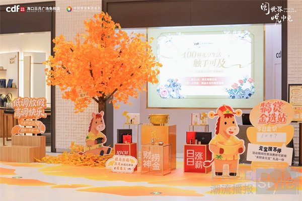 cdf海口日月广场免税店以“双节放大招”之势,推出低至3折的爆品与满额立减,并融合“骡马假日”主题打卡、中医义诊、“淘金捞元宝”等互动体验,让购物过程乐趣横生。