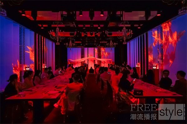 暮色四合,上海展览中心化身为一座巨大的光影剧场。友谊会堂内,光影在餐桌上流动演绎,最终定格于“A Richer, Deeper Character Revealed 深邃本色,层层尽现”的主题,预示着一场风味探索之旅的开启。