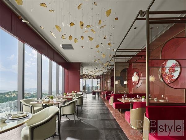 51层的芳菲苑作为府邸的“客厅”,270度无遮挡视野将城市与山海尽收眼底,宝蓝色大理石与午夜蓝墙面相映,刺绣耐冬花瓣点缀其间,展现中式优雅。凭窗可览天光流转,晨晖、暮霭、星夜景致各异,正因这份一日四时的景致变幻,凝练出“山海十二时辰”的独特亮点 —— 晨光里的清润晨食,正午时的鲜爽简餐,午后的雅致茶点,蓝调时刻里的特调鸡尾酒,让每一餐都与窗外景致形成奇妙呼应。