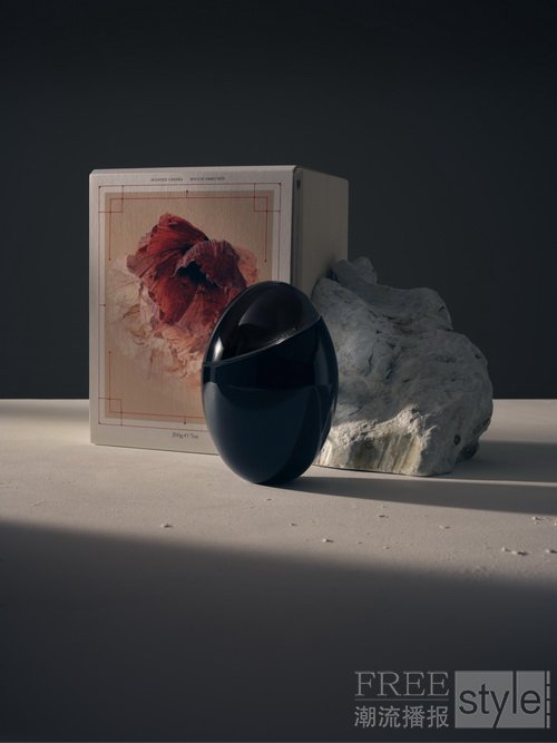 以Alexander McQueen高级成衣的自然叙事为灵感,香氛蜡烛被精心包裹在蛋型黑色烤漆玻璃外壳中,分别搭配银色、黑色或金色金属盖,并放置于由菌丝体材质打造的外壳及精巧木质板条箱中。
