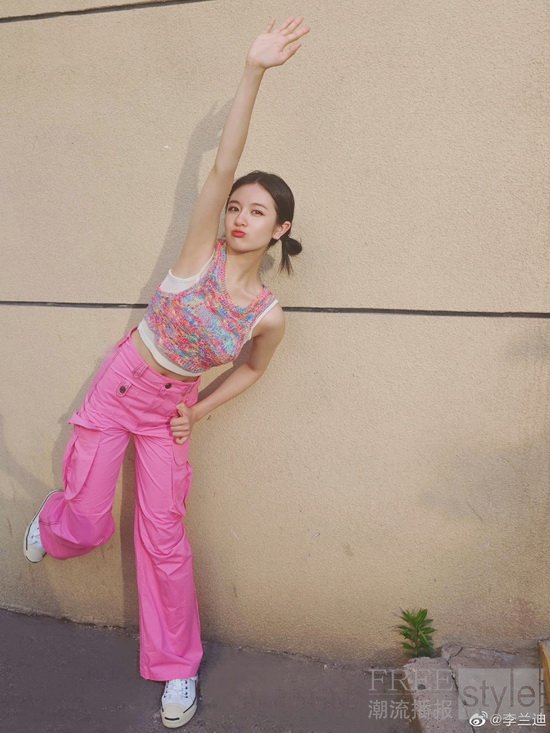 李兰迪丸子头粉色系穿搭,夏日元气满满的多巴胺粉色系女孩。