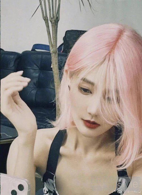近日,李一桐晒出一组粉发造型美照,五官精致,红唇吸睛,撩发秀优越侧颜。