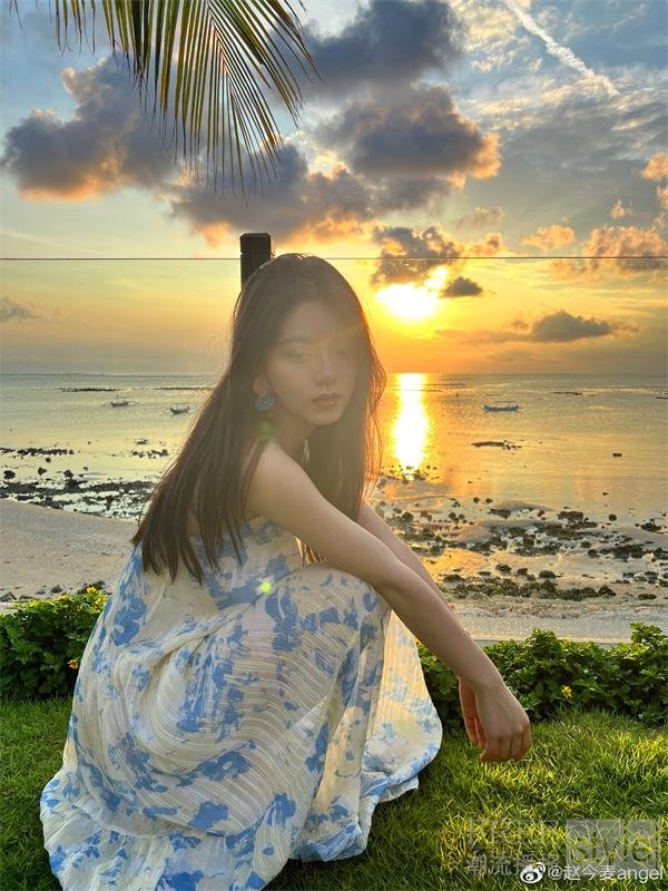 近日,赵今麦晒出一组自己的美照,她身穿蓝白色碎花裙披散长发,在落日余晖下笑容甜美,氛围感拉满。