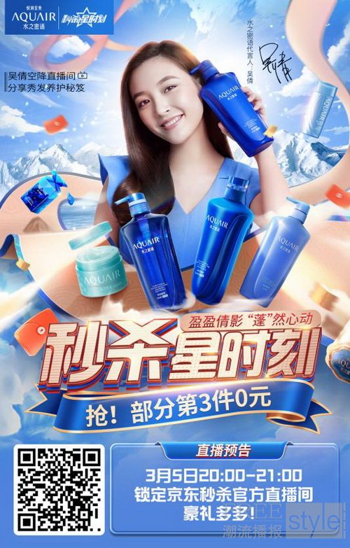 女神吴倩空降京东自营官方旗舰店直播间,邀你一起解锁水之密语同款护发好物!
