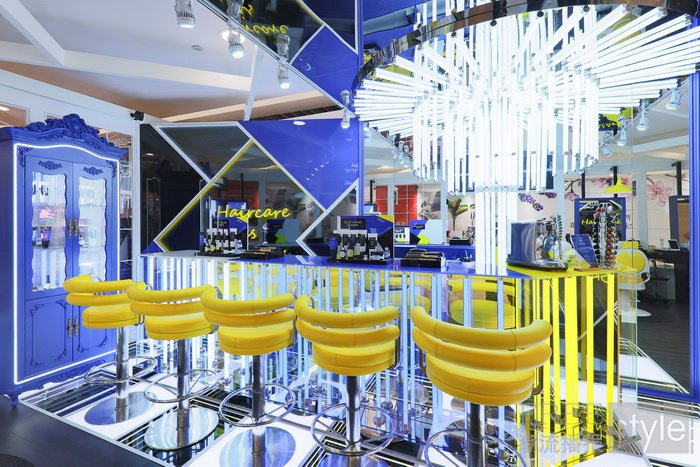 法国希思黎睿秀护发限时快闪店融合了欧式高端发廊的经典风格和当代时髦前卫的设计理念,以品牌标志性的蓝、黄、黑、白为主色调,打造出经典又新潮的睿秀发廊。彰显出法国希思黎睿秀护发品牌的底蕴——先锋科技与艺术体验的完美融合。