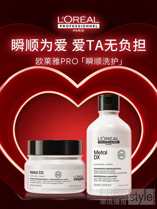 如何在拥有时尚的发型与潮染发色的同时,维护秀发强韧顺滑,如缎焕亮,在心动时刻展现最佳状态?欧莱雅PRO助力玩转色彩的弄潮儿,居家也能轻松体验沙龙级秀发奢养护理,解锁蓬松感柔顺气质发型,释放春夏时尚活力。发质受损、干枯毛躁、甚至断发多数是因为发丝中残留了由烫染、水质、环境污染问题所导致的金属沉淀。欧莱雅PRO「瞬顺」发膜,蕴含核心修护成分GLICOAMINE芯基酸,能快速螯合并吸出发芯中的金属沉淀,减少金属对头发的损害;同时作为超微分子,能轻松深入发芯,补充精华营养,修护发丝结构,真正做到核芯渗透修护受损发质,有效加强87%头发韧性。高级绵密乳霜质地,倒杯不洒,易延展不粘腻。