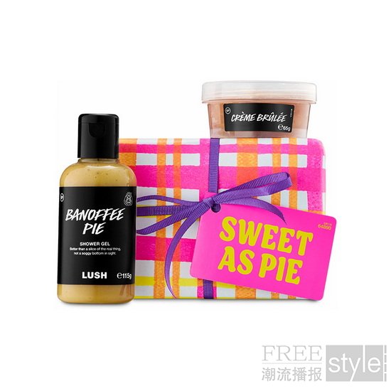 礼盒内容:香蕉太妃派沐浴露(100g)、焦糖布丁磨砂沐浴露(60g)