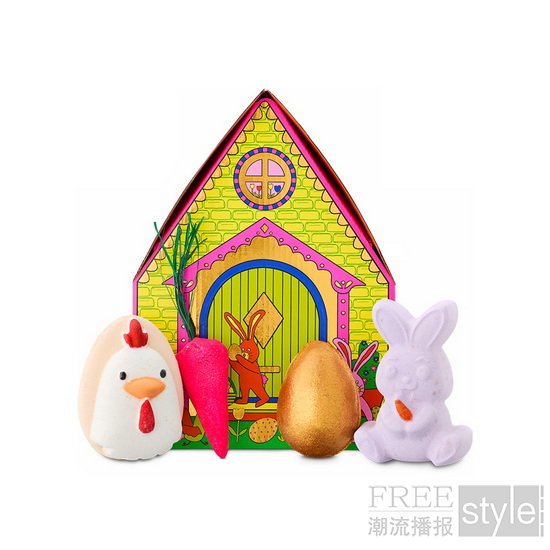 欢迎来到我的兔子洞!我准备了满满一窝 4 款浸浴产品,包括我最喜爱的复活节限定汽泡弹和泡泡浴芭,任君选择!不过记得在门口脱鞋,因为我们刚刚才铺好稻草地毯!