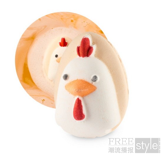 小鸡为什么过马路?为了崭露 “头” 角(和身体)!我们在小鸡的头部注入橘子和香橙精油,身体则散发甜美草莓及佛手柑香气,等于将 2 款汽泡弹合而为一,让你精神抖擞!