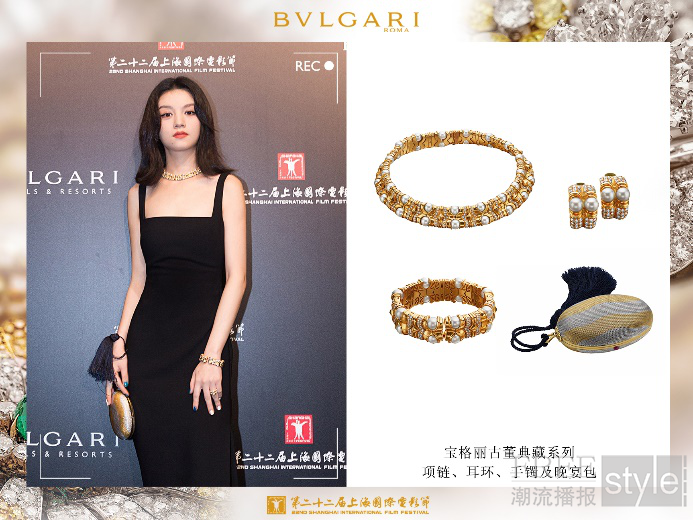 舒淇佩戴宝格丽古董典藏系列珠宝优雅亮相,以璀璨铂金与热情红宝石,绽放出甜蜜欢愉的意式风情;裴淳华搭配宝格丽古董典藏系列及高级珠宝系列珠宝,用黄金与祖母绿的优雅碰撞,释放其大胆而自信的迷人魅力。