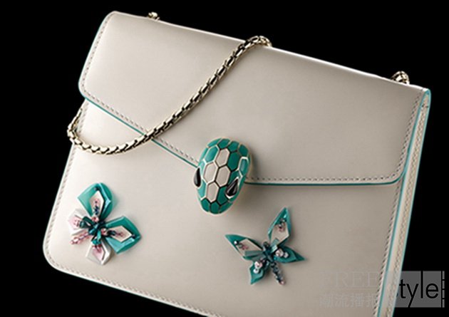 新款Serpenti Forever Butterfly Flow手袋 以宝格丽的浪漫魔力引领我们迎接本季新款。仿佛从童话中走来的手袋,表面饰以宝石光泽的蝴蝶贴花,带我们捕捉春天浪漫的一面。柔和色彩间的细微差别和精美的配色在蟒蛇皮和珍珠鱼皮等精美皮料上获得全新演绎。