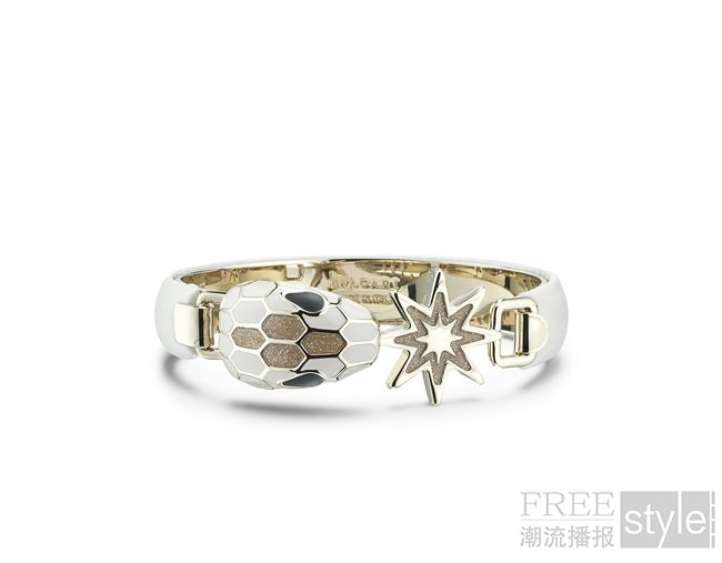 此外,宝格丽2019圣诞限定系列还包括:一款可随意系于腕间的二合一信用卡夹和呈现蛇首与八芒星相咬合的特别款Serpenti Forever系列手镯。最后,缀以五彩斑斓、群星闪耀的Shelley真丝围巾作为点睛之笔,成就非凡圣诞限定系列。