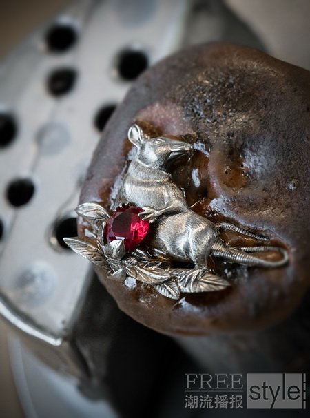 每款珠宝腕表的石榴果均以红宝石雕琢而成,9点钟位置的数个种衣采用雪花式镶嵌,鼠爪则抱着一颗尺寸较大的红宝石石榴籽。珍贵材质的巧妙配搭(钻石、金、红宝石)突显出老鼠的自然天性——热情、雄心勃勃、富有创造力,象征着繁荣昌盛。两款腕表遵循雅克德罗艺术作品限量发行的悠久传统,仅限量发行8枚。