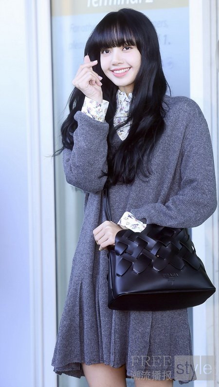 Lisa身着Prada 2020早春系列燕子印花衬衫,搭配灰色针织裙,Prada 2020编织乐福鞋及编织款Matinée手袋现身机场,出发Prada 2020秋冬女装秀。