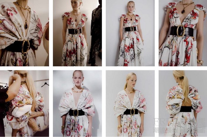 在2020年的春夏时装系列上,象牙色的爱尔兰亚麻布服装,采用蚕茧状的后背和夺目衣袖,而棉质丝绸西装则手工绣上了濒危的花朵。濒危花卉刺绣最初来自Alexander McQueen团队在布满罕见花朵的玻璃房子里画的素描,并在工作室完成设计。每一件艺术品都被设计成适合特定的设计。濒临绝种的花朵刺绣代表了对自然的热爱,这Alexander McQueen品牌手迹的核心。在这里,它们的美丽得以保存。