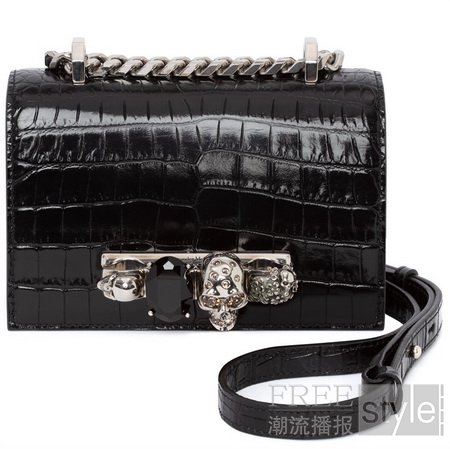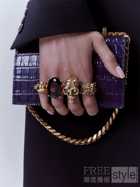 Alexander McQueen 2020年早秋系列中,Jewelled Satchel系列引入了全新当季材质及色彩。Jewelled Satchel是品牌标志性包袋系列。受到每一季主题和设计元素的启发,Jewelled Satchel也被重新设计迭代。像过往系列一样,Jewelled Satchel采用了品牌标志性的珠宝手柄,手柄上饰以Alexander McQueen骷髅头装饰。Jewelled Satchel具有经典尺寸、精巧尺寸及迷你尺寸可供选择。在2020年早秋系列中,Jewelled Satchel以全新色彩亮相,其中包括深红色、象牙白、紫水晶色、银色、金色及黑色。