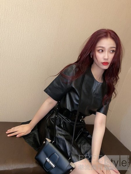 近日,虞书欣身着 Longchamp 2020 秋冬秀款黑色皮质上衣与裙裤,以简约利落的 Roseau Box 系列斜背包点缀,一展“时髦精”本色。