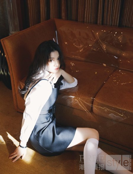 春夏身着Prada 2021早春系列拉西米尔绸连衣裙及府绸衬衫,搭配Prada Re-Nylon再生尼龙系列腰带及Prada系带德比鞋,亮相电...