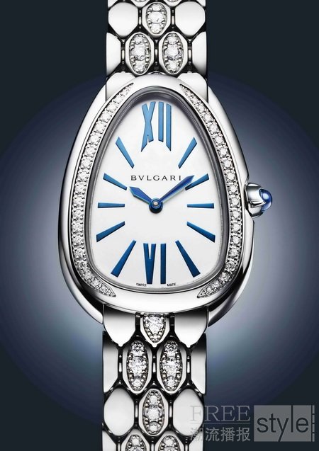 宝格丽Serpenti Seduttori鎏光蛇影白色18K金腕表配半密镶钻石表链