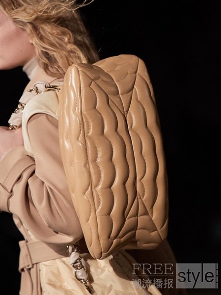 其他本季的全新风格包括扇贝形绗缝图案和皮革补丁的手袋,同时还有手工编织的皮革托特包,手柄上以可回收木料制作的“C”字母装饰。“对于我而言,这些奢华的单品展示了品质和工艺如何在非富丽堂皇的质感下实现共存。”