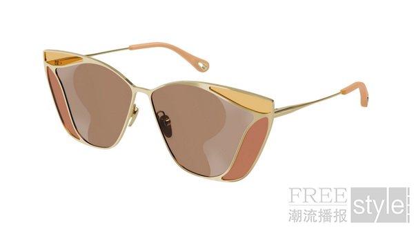 在Chloé 2021春夏系列时装秀上,标志性的Gemma太阳眼镜款式出现于一系列肖像、于纽约拍摄的短片和独家幕后花絮照片中。蝴蝶形镜款以轻轻质金属打造柔美几何镜框,呈现彩绘玻璃效果,并饰以夺目色彩。