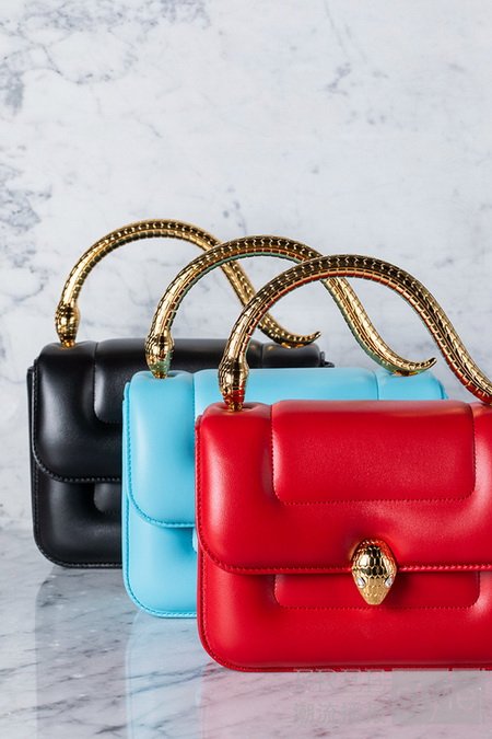 此次合作系列包袋共推出三种款式—— Serpenti Metamorphosis 刺绣手提包袋、Serpenti Metamorphosis 蛇柄手提包袋 和 Serpenti Metamorphosis minaudière晚宴包,以及精选织物系列。本次合作系列包袋玩转高级定制工艺、精雕细琢的细节变化和俏皮有趣的珠宝设计风格,精选系列所有包袋的内部均配有金属铭牌,印有 “Mary Katrantzou x BVLGARI” 字样。