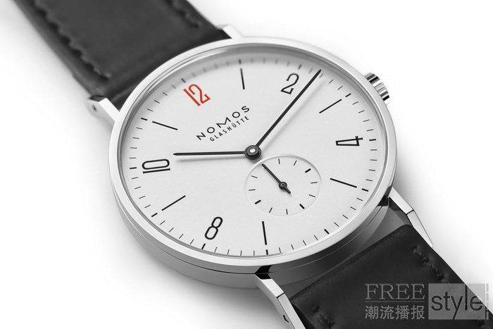 表盘上红色12点时标是特别款腕表与众不同的标志。NOMOS 腕表助力施助者,共筑美好未来。全新Tangente 38 – 50 ans Médecins Sans Frontières腕表,助力拯救生命。