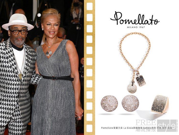 第 74 届戛纳电影节评委会主席、美国知名导演斯派克•李(Spike Lee)之妻、制作人、编剧托尼亚•刘易斯•李(Tonya Lewis Lee)佩戴Pomellato宝曼兰朵La Gioia高级珠宝Sabbia系列出席戛纳电影节红毯。各色钻石铺镶工艺融入简约大方的几何设计之中,点亮非凡魅力。