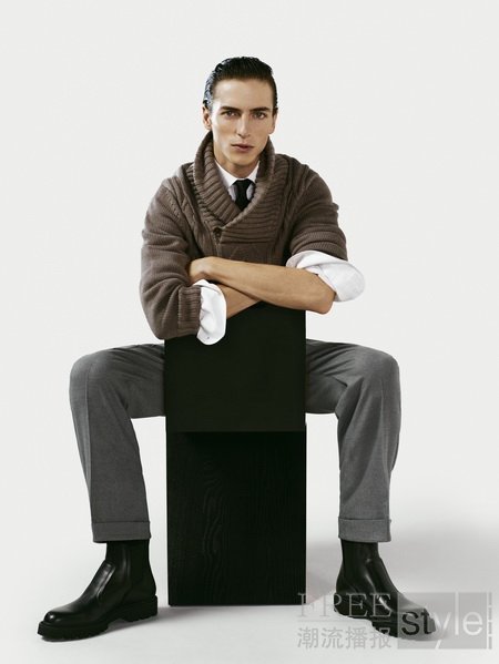 现代绅士希望拥有精致且别具当代精神的单品,配以衬衫及领带来彰显个人创意。本季新品囊括了饰以针织领口与袖口的夹克,织物的柔软与干净利落的廓形相辅相成;以及对羊绒猎装夹克的崭新诠释,与裤装和领带组合搭配,从而带来别具一格的剪裁表达。