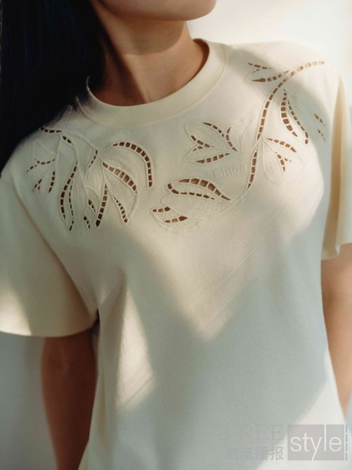 生动精巧的英式刺绣木兰花以镂空形式自然舒展于卫衣与T恤领间,曼妙的花朵轮廓与淡雅色系相映成趣,隐现肌肤间展露清新盎然的个性韵味。两款单品均采用低环境影响的棉绒材质制成。