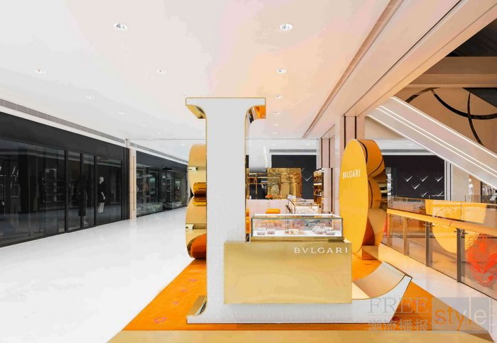全新限时精品店以极具现代风格的创作手法表现品牌的先锋创想,巨型字母的纯净白色与金属色泽在灯光映照下挥洒耀目光彩。巨型品牌Logo设计理念代表了“Larger Than Life 活出华丽人生”的宝格丽品牌精神,以及深深根植于罗马的恣意欢愉。