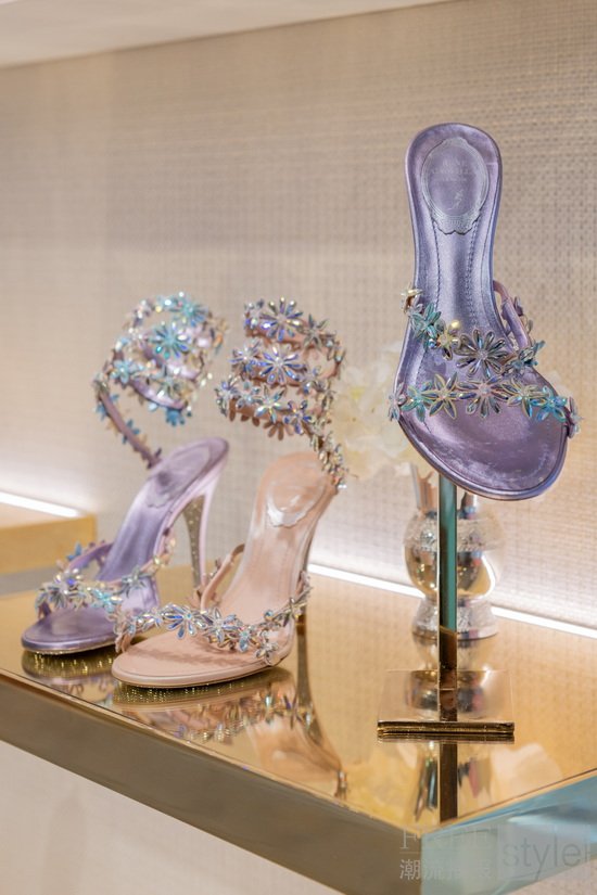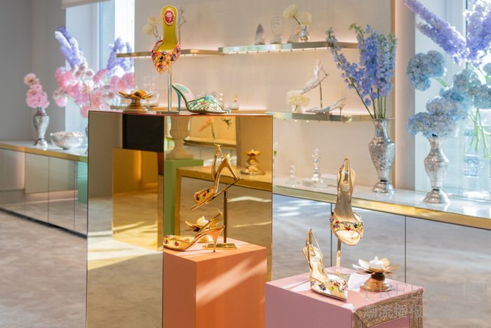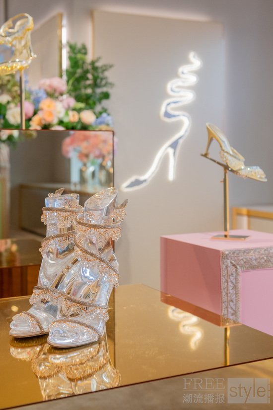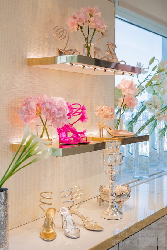 Eden系列本次推出标志性蛇形绕环、穆勒鞋、露跟及猫跟夹脚凉鞋款式,以柔和的金属色调演绎春日娇艳。Jolene系列则以羽毛与水晶打造的花卉装饰注入活力,亮粉或裸色选择为经典优雅注入大胆新意。极简几何线条与长条形水晶点缀于Spark系列的夹脚凉鞋、穆勒鞋及高跟凉鞋,赋予其璀璨动感;重现2004年经典款的Flora系列,则在缎面薄纱与金色蕾丝上缀满手工刺绣的缤纷花朵,将自然转化为可穿戴的诗篇,在此温暖的季节,推出8厘米高跟凉鞋与露跟凉鞋款式可供选择。