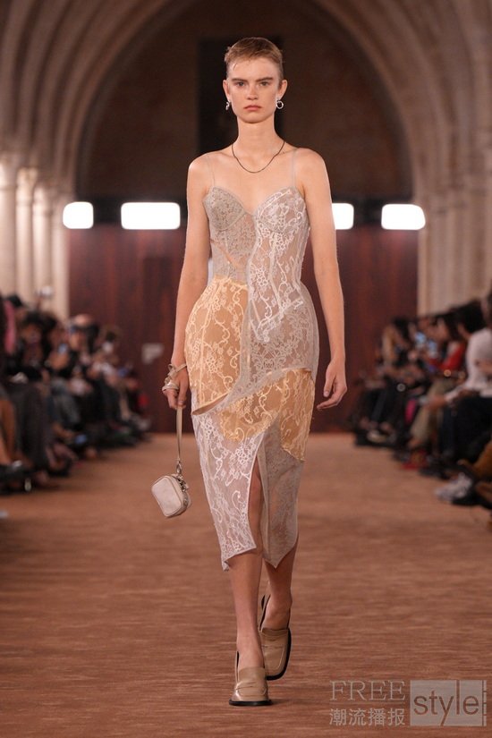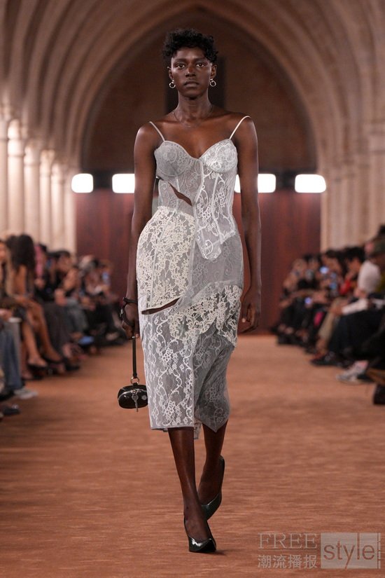 秀场以镜头拼贴艺术家Pacifico Silano的影像作为视觉主题,并在空间中同步呈现,整个系列流淌着潜在的情感关系。音乐人Robyn为2026春夏系列创作独家配乐,其中包含全新作品以及与Yung Lean合作重新录制的2005年曲目《Robotboy》。音乐从感性到张扬,延展多重音域,跃动的女性气质代表本季的主角们发声。