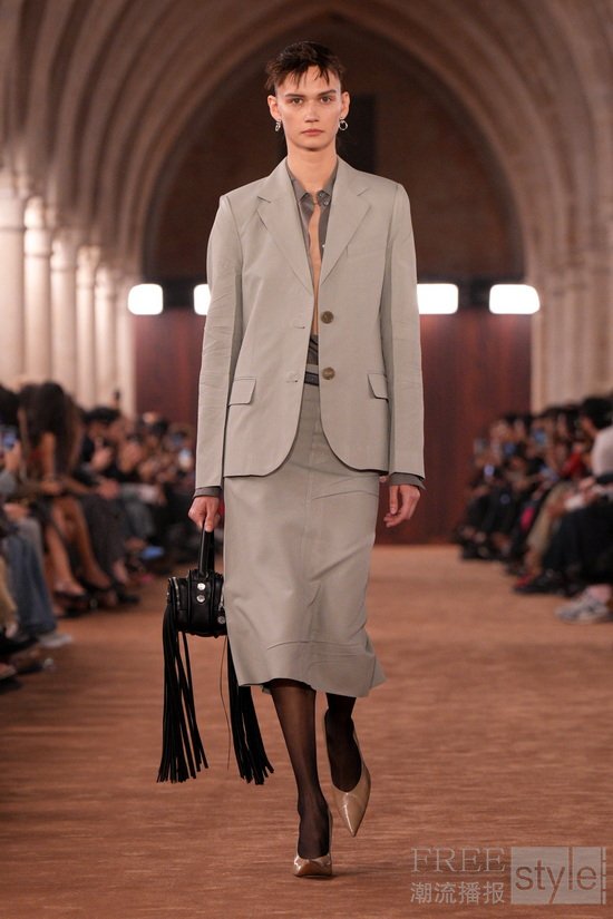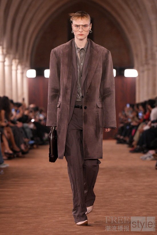 Acne Studios 2026春夏系列以解构男装与女装原型的方式,探讨两者之间相互的影响。系列中极致与日常交替切换,呈现出女性主角的另一种构想——不依循既定目光,而启用她多面的自我感知。于巴黎历史悠久的Collège des Bernardins拱顶大厅内,品牌营造出一间氛围感浓郁的雪茄沙龙,在这一场景中,她们如鱼得水:既叛逆前卫,又精致隽永。