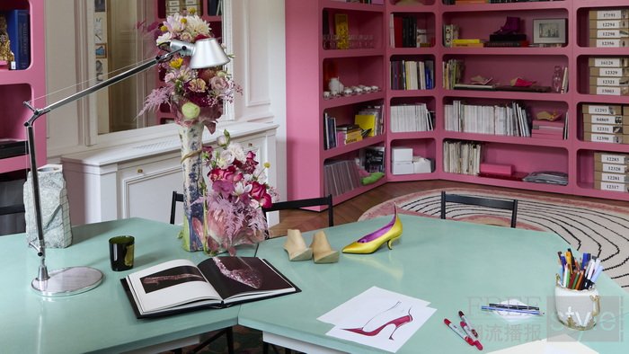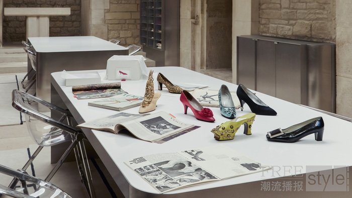 「RV之家」首次向宾客开放档案馆,呈现品牌的隐秘珍藏与深厚传承。馆藏逾一千件作品,连同草图、杂志与照片,以博物馆级标准保存,却依旧保留着设计师世界的亲密氛围。其中亮点包括:1962年为索拉娅王妃(Princess Soraya)设计的原型鞋款;关于伊丽莎白二世女王(Queen Elizabeth II)加冕礼鞋履的珍贵文献;1955年为 Dior 设计的凉鞋;以及1965年在 Yves Saint Laurent Mondrian 系列中首度亮相,并因凯瑟琳·德纳芙(Catherine Deneuve)在《白日美人》(Belle de Jour)中的演绎而名垂不朽的 Belle Vivier扣饰高跟鞋。每一件作品都凝聚着罗杰·维维亚先生的天才构想,见证了品牌在过去与当下之间延续至今的对话。