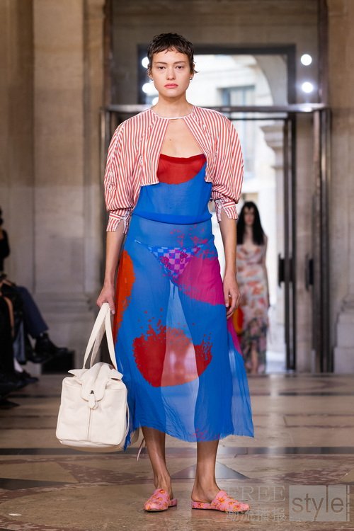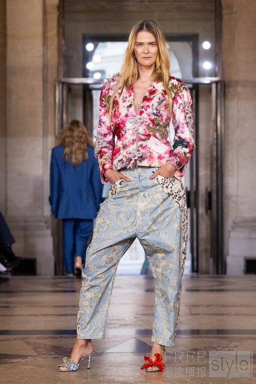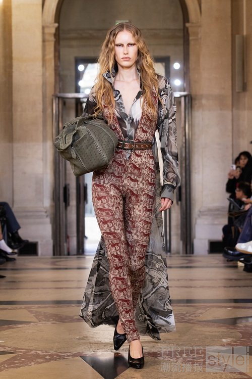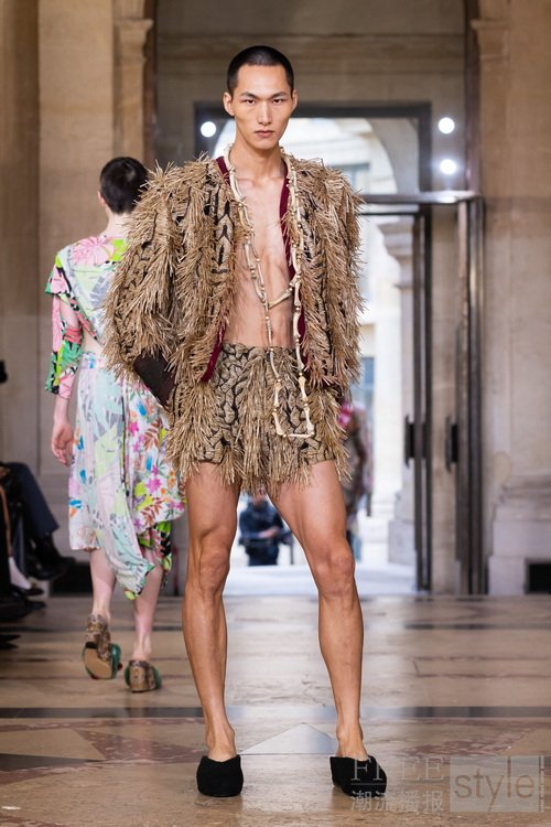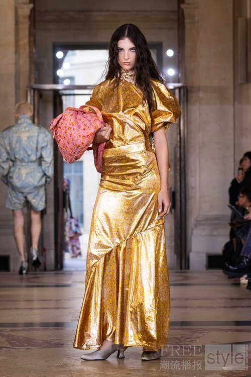本季系列创作从古老的窗帘帷幔汲取灵感,并将这些富有历史感的元素转化为可穿戴的服饰。我对意大利市集中随处可见的典型织物情有独钟,于是将这些布料与品牌标志性印花相互融合,同时再次利用剩余布料。