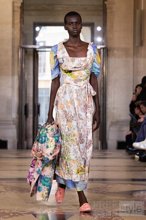 此次大秀选址于法国学术院(L'Institut de France),这一历史悠久的文化殿堂赋予此系列更深厚的意义。现场花艺以向日葵为主,并点缀了一把来自瑟堡(Cherbourg)的伞——象征着温暖与欢愉。我们的伦敦工作室露台上也种满了向日葵,每一次看到它们,都会让我不由自主地微笑。