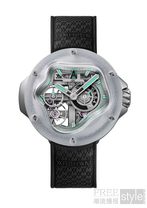宇舶表MP-17 Meca-10 Arsham Splash钛金蓝宝石腕表仅限量典藏99枚,于宇舶表专卖店及授权零售商处发售。