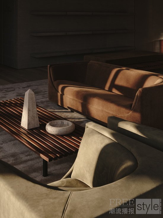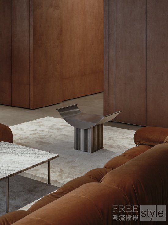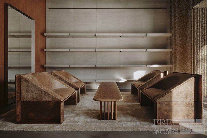 坐落于北京三里屯街角的右岸精品店,外立面采用灯芯绒水泥肌理诠释现代奢华格调,建筑内部三层空间在不同材质与光线的层次中展开,构成克制平衡的视觉语言。柔和光幕与通透布局则营造出静谧有序的氛围。位于精品店顶层的私人沙龙则升华体验,提供专属场域的静谧尊享。不同功能区域彼此呼应,家具与艺术品的陈设深深根植于品牌的文化传承。臻选藏品包括三把艺术家Bob Wilson设计的座椅、设计师Pierre Chapo打造的伸缩式躺床,以及设计师Charlotte Perriand、Frank Lloyd Wright与Jorge Zalszupin的艺术作品——这些典藏之作呼应着圣罗兰先生一脉相承的收藏家精神。