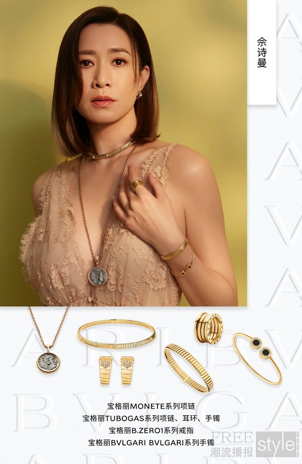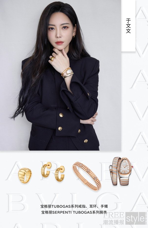 鎏光熠彩,点亮节日风尚。佘诗曼以Tubogas系列作品叠搭Monete、Bvlgari Bvlgari及B.zero1系列经典佳作,标志性螺旋曲线流转腕间颈畔,如金色暖阳般闪烁鎏光色泽。姚晨以Tubogas系列手镯及Serpenti Seduttori鎏光蛇影腕表相映成韵,灵蛇之姿翩然绽现,“蜕变与新生”的盎然力量萦绕身畔。秦岚则以Tubogas系列项链搭配B.zero1系列耳环,绽放优雅自信的女性魅力。陈都灵以Serpenti Viper系列项链搭配B.zero1系列耳环,如光跃动,点亮璀璨节日季。