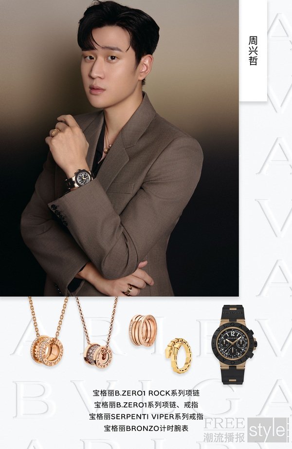 经典格调,铭刻庆典时分。周兴哲叠戴B.zero1及B.zero1 Rock系列项链,腕间的宝格丽Bronzo计时腕表以青铜独特色泽镌刻时光印记。丁禹兮选择Bvlgari Bvlgari系列手镯叠戴同系列腕表。黑金交织的经典配色点亮冬日氛围;标志性双Logo设计与罗马铭文谐美交织,彰显历久弥新的复古格调,更添率性锋芒。