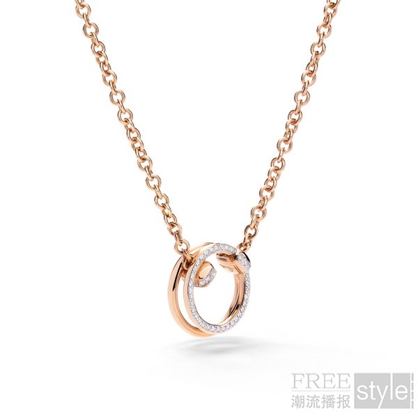 爱,是灵魂共振时的惺惺相惜,是并肩前行时的笃定陪伴。Pomellato 宝曼兰朵Pomellato Together 系列项链,以细腻双圈勾勒出灵动线条,将同心轨迹凝于颈间,定格每一次心意相通的瞬间。同系列戒指臻呈可单独佩戴亦可叠戴的日常之选,玫瑰金搭配华美钻石,隽永金艺与夺目钻光璀璨夺目,象征爱意交织时的坚定鎏金。手镯承袭标志性的环扣设计,流畅的金带相互交缠、紧密相拥,将缱绻情意与圆满期许悄然镌刻,腕间流转的光芒,见证每一段隽永深情。