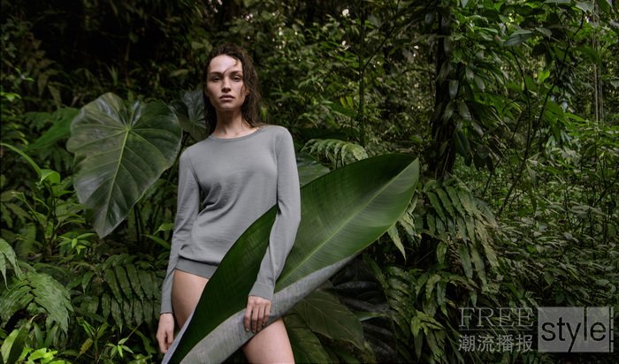模特穿行于丛林树冠下,徜徉于林间小径,掩映于浓密的热带植被之中,宽大的叶片与纹理交错的树干勾勒出自在轮廓。这些画面成为绝佳的视觉隐喻,诉说着羊绒所兼具的卓越性能、多元穿搭、轻盈质感与内敛优雅。