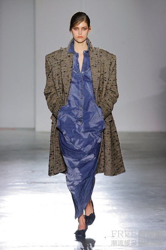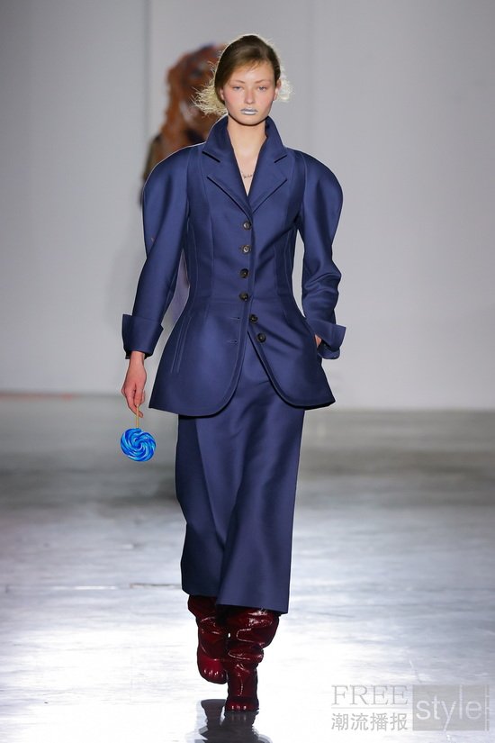 此次冬季系列以丝绸、学院风西装外套、晚宴西服、外套以及条纹元素为核心。Experimental连衣裙采用粗犷或开口缝线,以不同形态垂落包裹身体。饰有缎带的Smock罩衫裙将结构感面料与随机的色彩混合,柔和而不协调。裁剪设计充满即兴感,每件单品都不受固定形态束缚,可随性搭配。极致双层垫肩的肩部,可穿在大衣或毛衣之下。系列还包括 Cupid 针织单品,既有趣味又温暖。