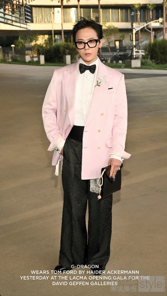 歌手G-Dragon(权志龙)身着由品牌创意总监 Haider Ackermann 设计的 TOM FORD 服装,亮相 洛杉矶郡立艺术博物馆(LACMA)大...