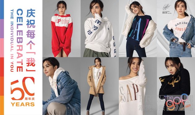于2019年8月,由Gap品牌大中华区品牌代言人Jolin 领衔的Gap 50位个性领袖组成的豪华阵容现已全部揭开面纱——青年演员孙伊涵、多栖创作人俞璐、雨林精灵李婉妲、摇滚乐队猴子军团、嘻哈歌手陈泽希等在各自的领域皆有着出色表现的意见领袖们,穿着多款集舒适与风格于一身的Gap产品所表现出的大胆、独特、自由、积极等特质与Gap的品牌精神不谋而合,充分凸显Gap品牌多年来所坚持的精神价值——跨越界限、包容你我,始终鼓舞当代年轻人携手共进,庆祝每一个“我”!