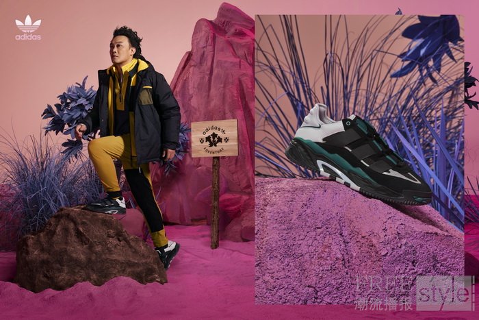 陈奕迅演绎户外adventure graphic主题风格的黑黄拼色冲锋外套、马甲、套头衫和运动裤,展现个性的同时又兼顾实用性,塑造出了秋冬户外浪潮风格。此外,NITEBALL鞋款将深绿与黑白进行拼接,增加鞋款的色彩层次。鞋舌暗藏惊喜,揭开黑色魔术贴才能露出adidas Originals logo。鞋后跟部分充分考虑穿着的舒适性,用厚布料来缓冲运动时带来的冲击。